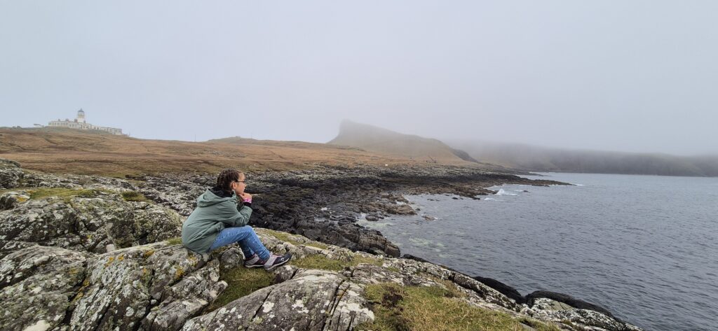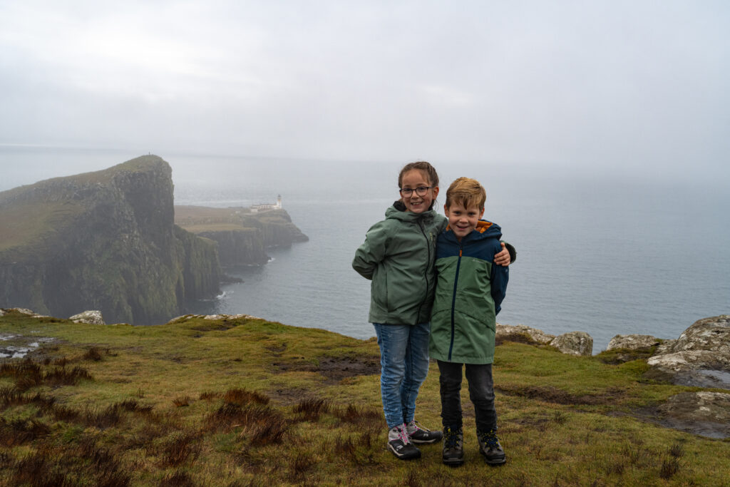 The famous lighthouse on the most westerly point on Skye. Quite a hike, certainly the way back. We told the kids at the end ;). But, there are some terrific viewpoints.