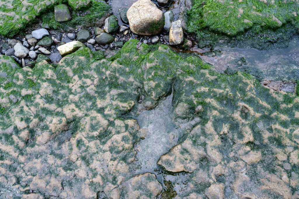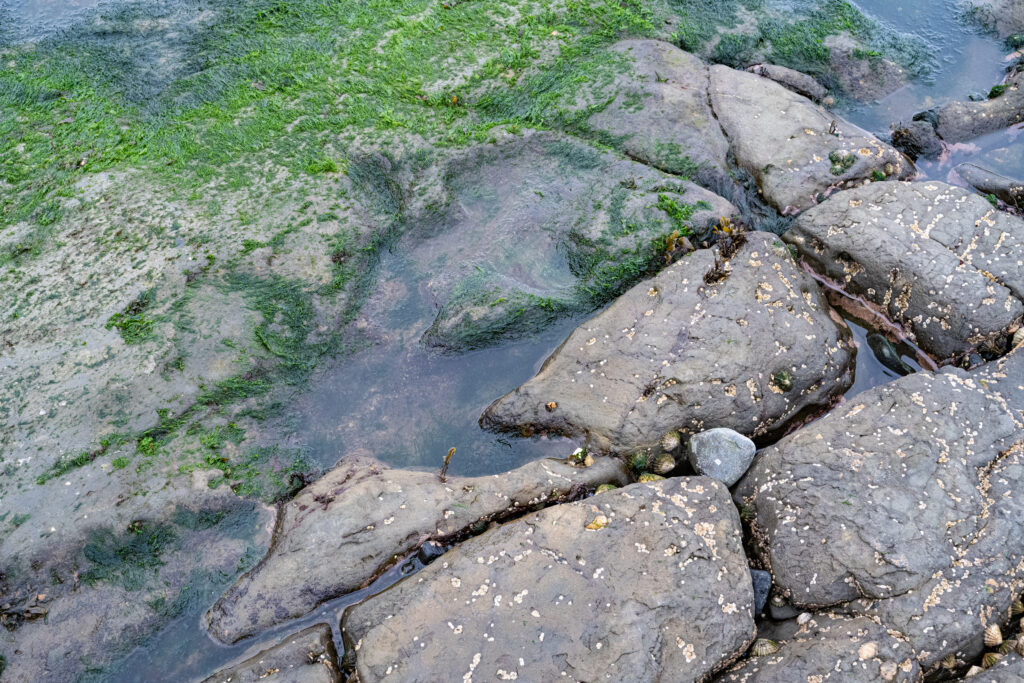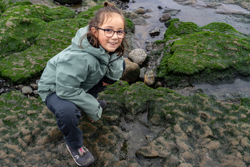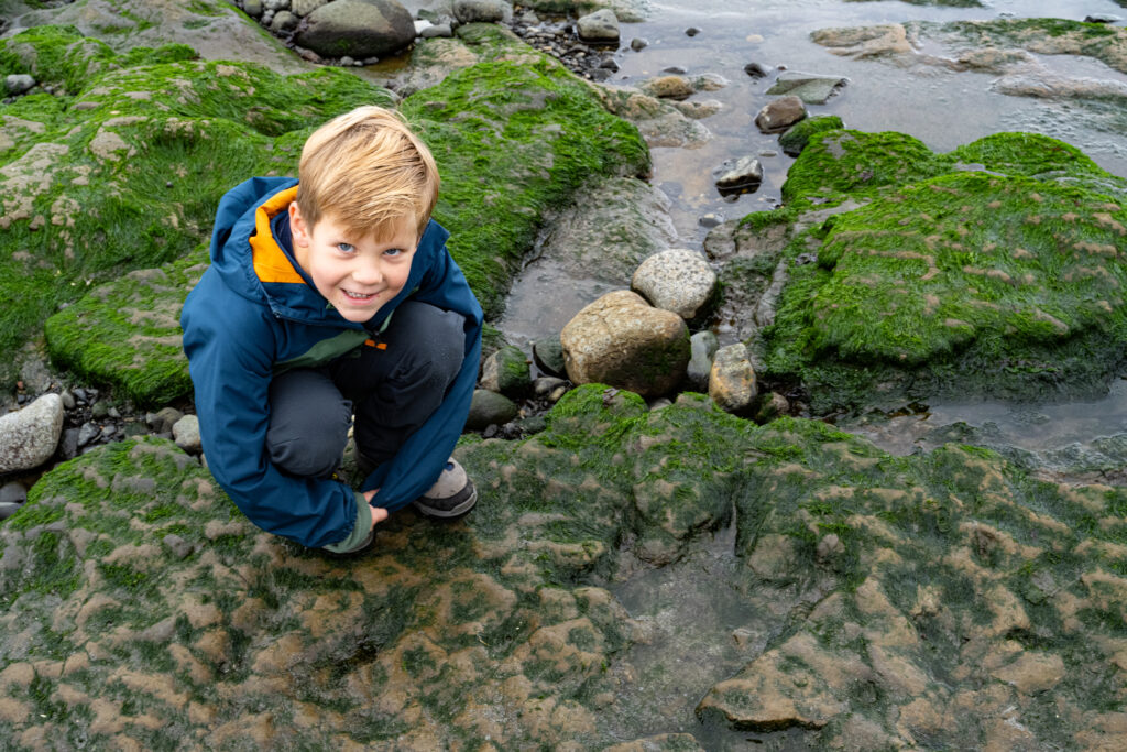 So today we went looking for Dinosaurus footprints. It took most of the day because we had to wait for the right (low) tide. At 1:10PM the tide is on it’s lowest point. The rocks on the beach are now exposed and it should be possible to find the prints. But I won’t say easy to find.